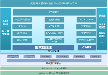 方案配置:圖文檔管理、工作流、紅線批注、電子簽名、AutoCad集成、CAPP工藝圖表、工藝匯總表、制造看板、IATF16949模塊等